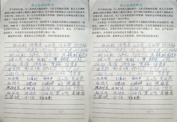 二零一四年四月到五月期间,河北廊坊167位市民不惧中共暴政,伸出援助之手,郑重签名支持法轮功学员,强烈要求中共立即停止迫害法轮功。人们都感到这样使人道德回升的功法应该在中国社会堂堂正正的弘扬。