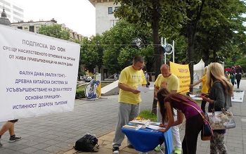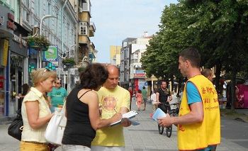 ![]() 法轮功学员在保加利亚布尔加斯市讲真相征签 |