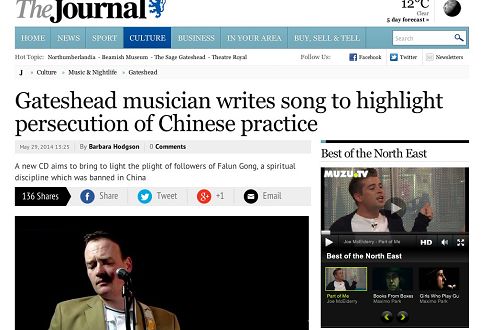 英格兰东北部主要地方媒体《杂志》于二零一四年五月二十九日刊登一篇有关法轮功的长篇文章,文章题目是“盖茨海德音乐人写歌揭示中国修炼被迫害”。