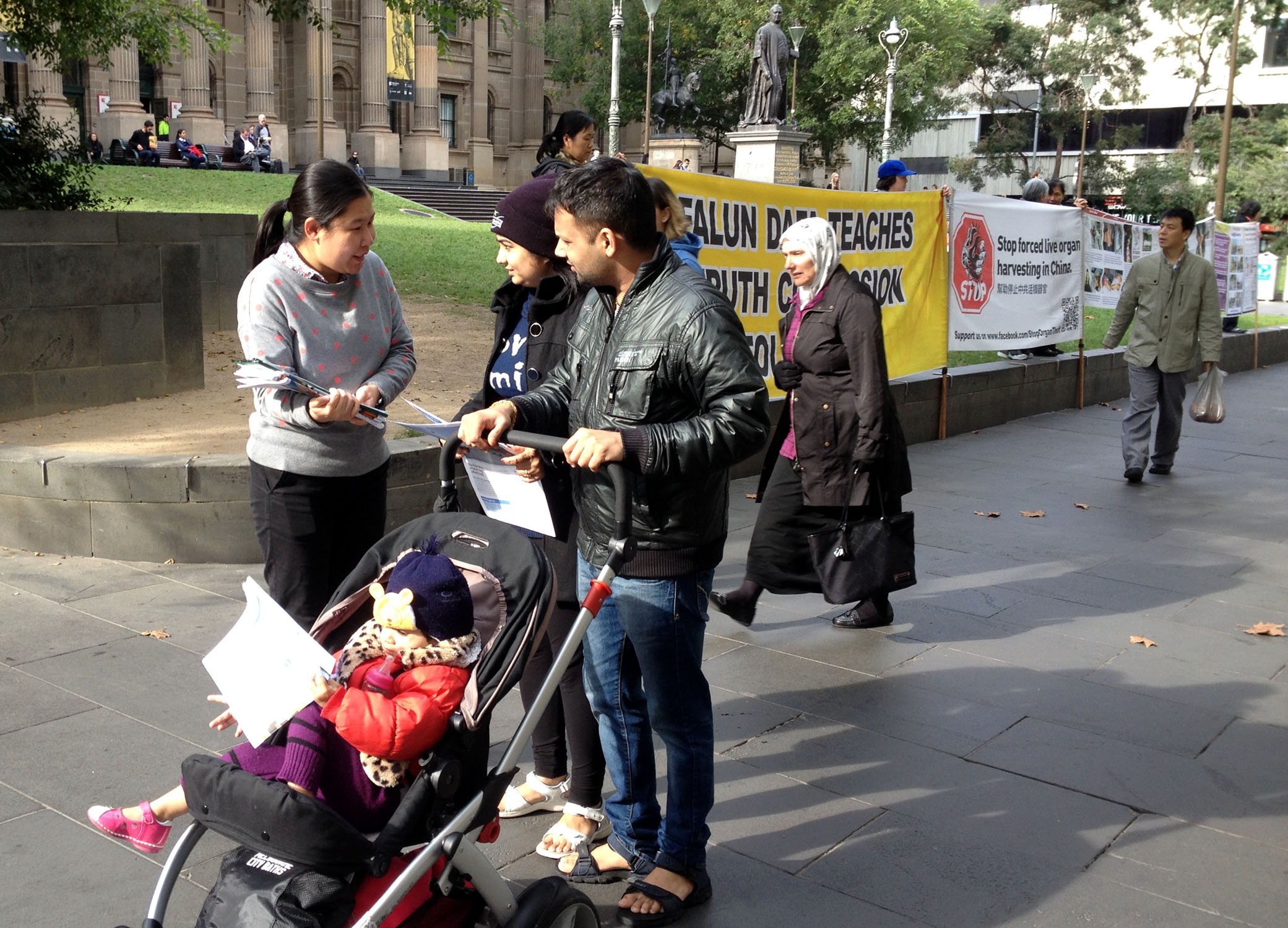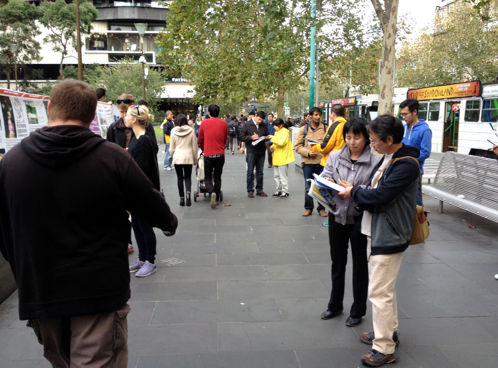 ![]() 了解了真相的墨尔本民众在征签表示签名支持法轮功学员的反迫害 |