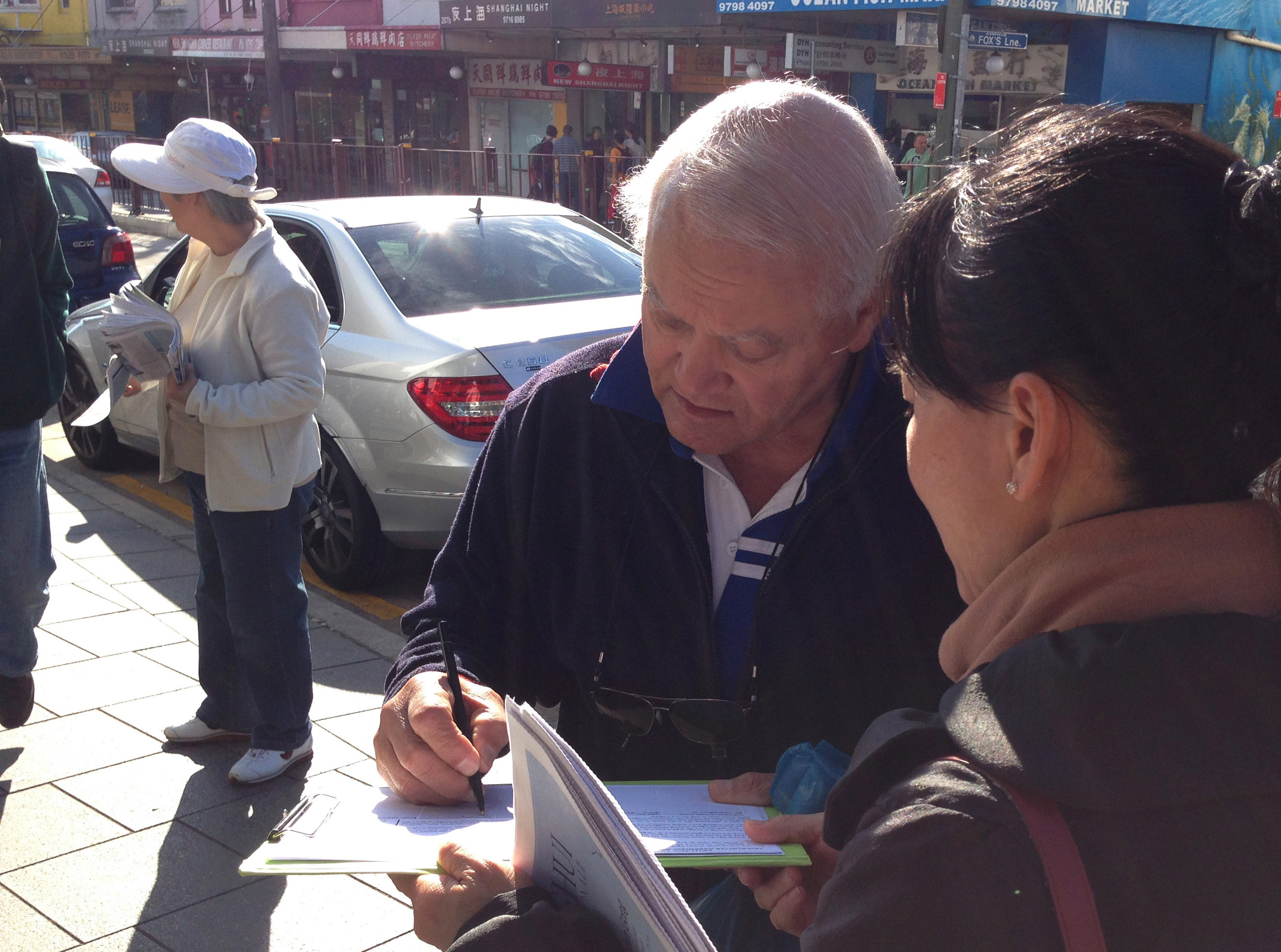 在活动过程中,也有个别不明真相的华人,经过时谩骂退党义工,被现场的澳洲人制止。