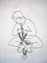 龙山教养院:恶人把王红的头强行塞进双腿中间,用绳子将双腿绑紧,夹住其头部,然后再把双手绑在背后,命其必须站着,否则拳脚相加。这种体罚最长持续20多个小时。另一种刑罚强迫其坐在地上把双腿伸直,把头硬绑在一条腿上,后面再把双手绑上,持续时间20多小时。狱警唆使犯人掐其脖子,几乎使其窒息。