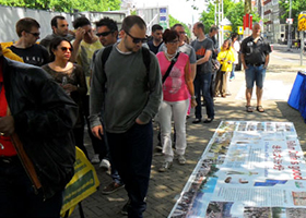 二零一四年六月一日,部分荷兰法轮功学员在首都阿姆斯特丹唐人街,举办洪法炼功和征签活动,过往游客纷纷驻足了解真相,并签名支持信仰法轮功的权利。