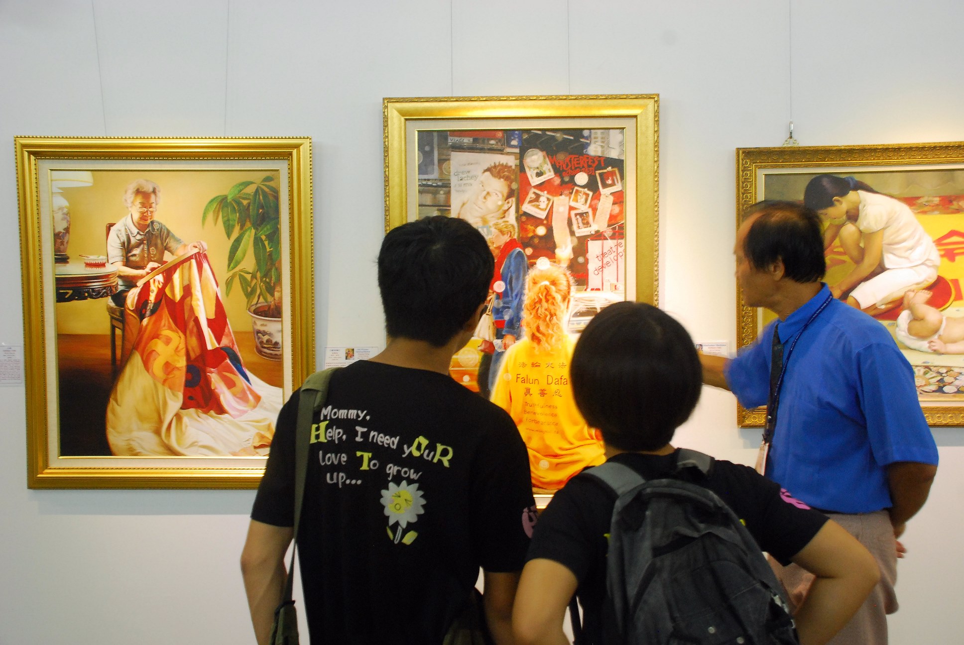 导览人员还表示,有一位回台的美国留学生参观了美展,当他看到“活摘器官”这幅画时,不停地流眼泪,导览人员向他讲述了法轮功在大陆被迫害,中共摘取法轮功学员器官变卖图利,这位留学生惊讶地说:“现在世界上还有这种不人道的事情发生,实在不可思议。”