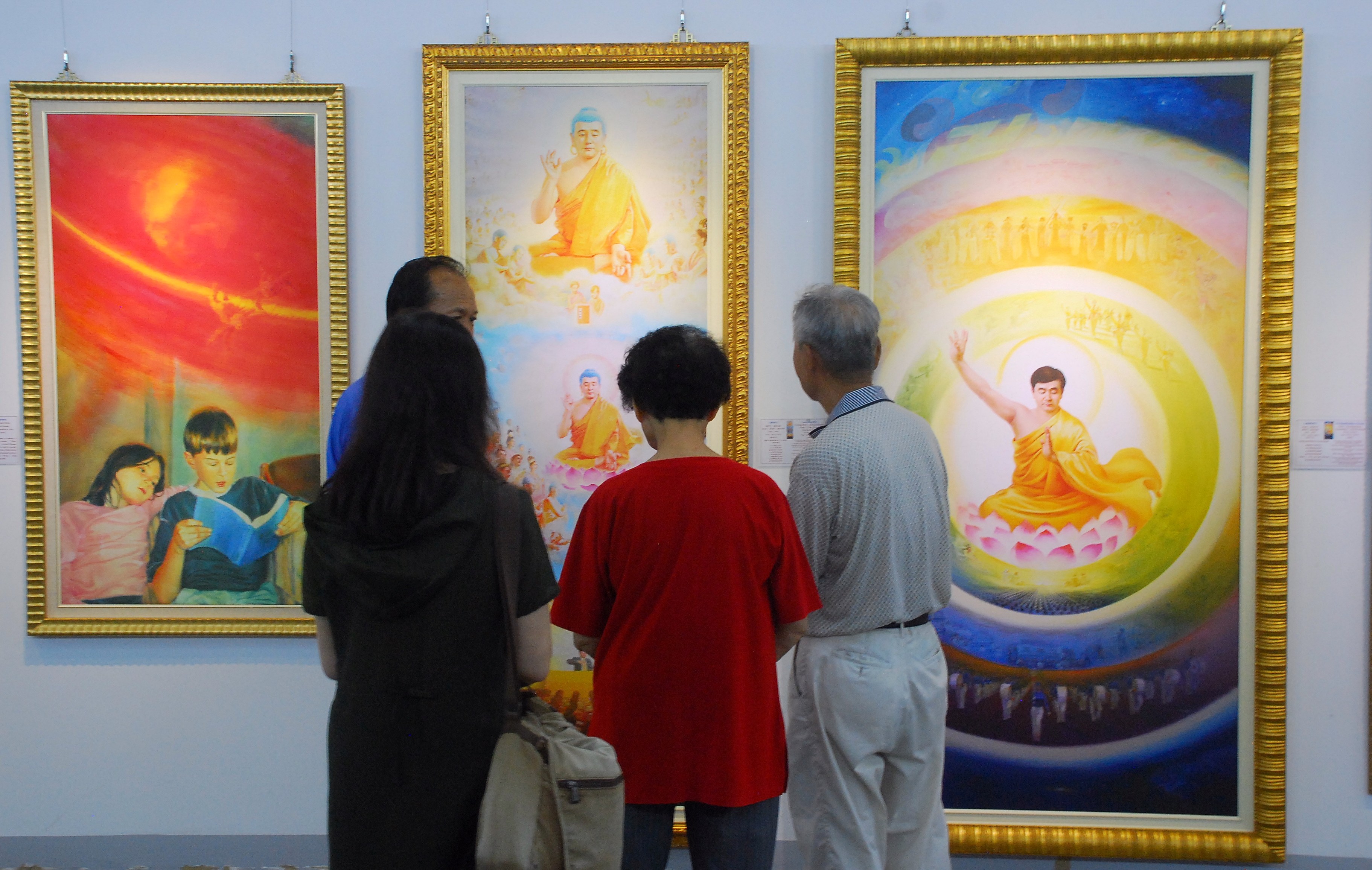 画展展出三十多幅画作,其中包括“同化大法”、“返本归真”、“传播真相 呼唤正义”等。导览人员表示,这些作品是由一群来自不同背景的艺术家创作的。他们因为修炼法轮大法,得到身心的健康、精神的升华,领悟宇宙人生的真谛,把自己对人生的领悟、亲身的经历,以及在这群同化真善忍的人们身上所发生的事情通过艺术作品展示出来。