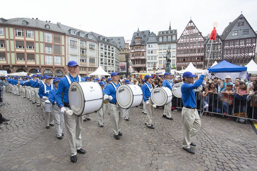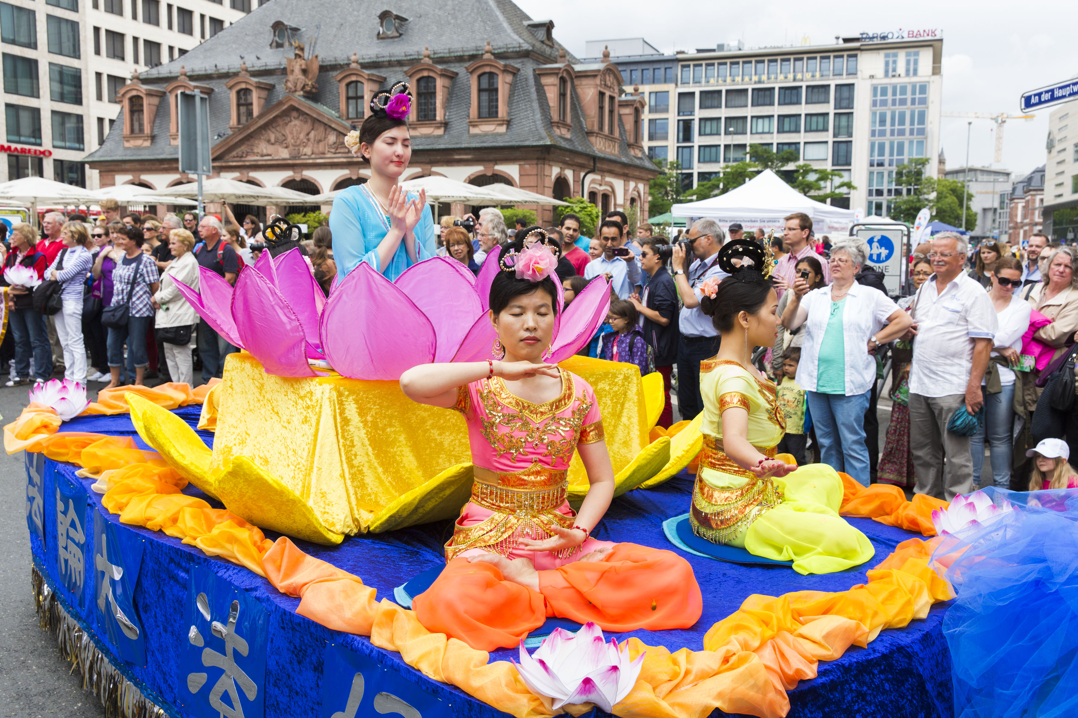 法兰克福是德国商业中心,是个以大文豪歌德故居、国际性转运中心、世界银行云集及国际大型商展闻名于世的都会,充满了多元文化气息,可说是德国的大门。从二零零三年以来,每年法兰克福都会举办一次多元文化节,其目的是使城里来自一百八十多个民族的人能够互相了解、和平相处、共同发展。在中国文化方面,从首届文化节开始,法轮功学员组成腰鼓队、花车和天国乐团等精彩表演,都成为文化节中一道亮丽的风景,每次皆赢得观众与评审的高度好评。