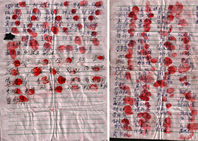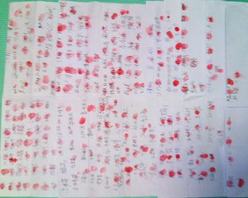 四川彭州市敖平镇法轮功学员白贵银今年初被警察绑架,当地乡亲自愿签名声援白贵银,当地中共人员、警察十分恐慌,用扣掉“耕保金”“社保”来威胁民众不许签名。