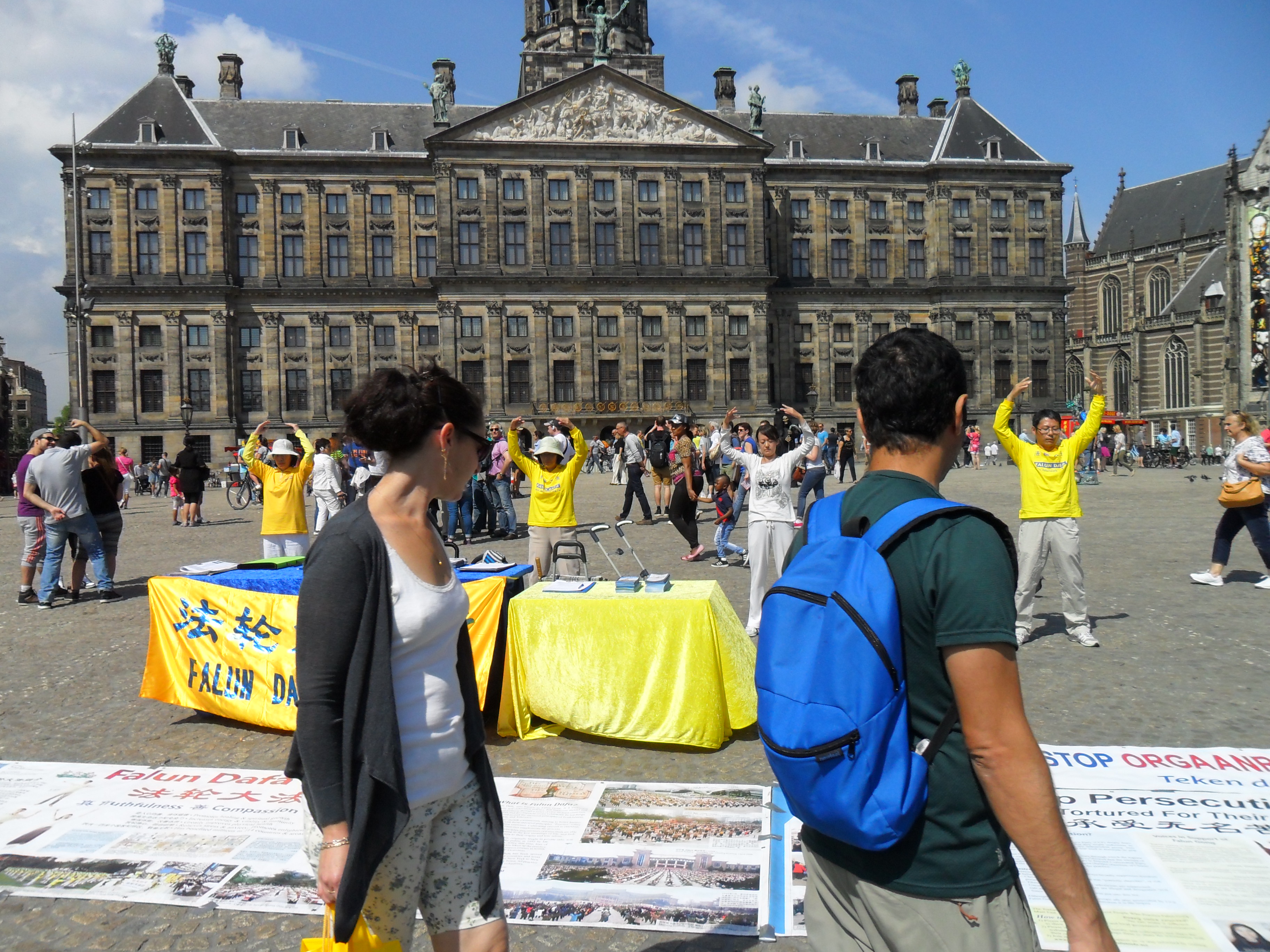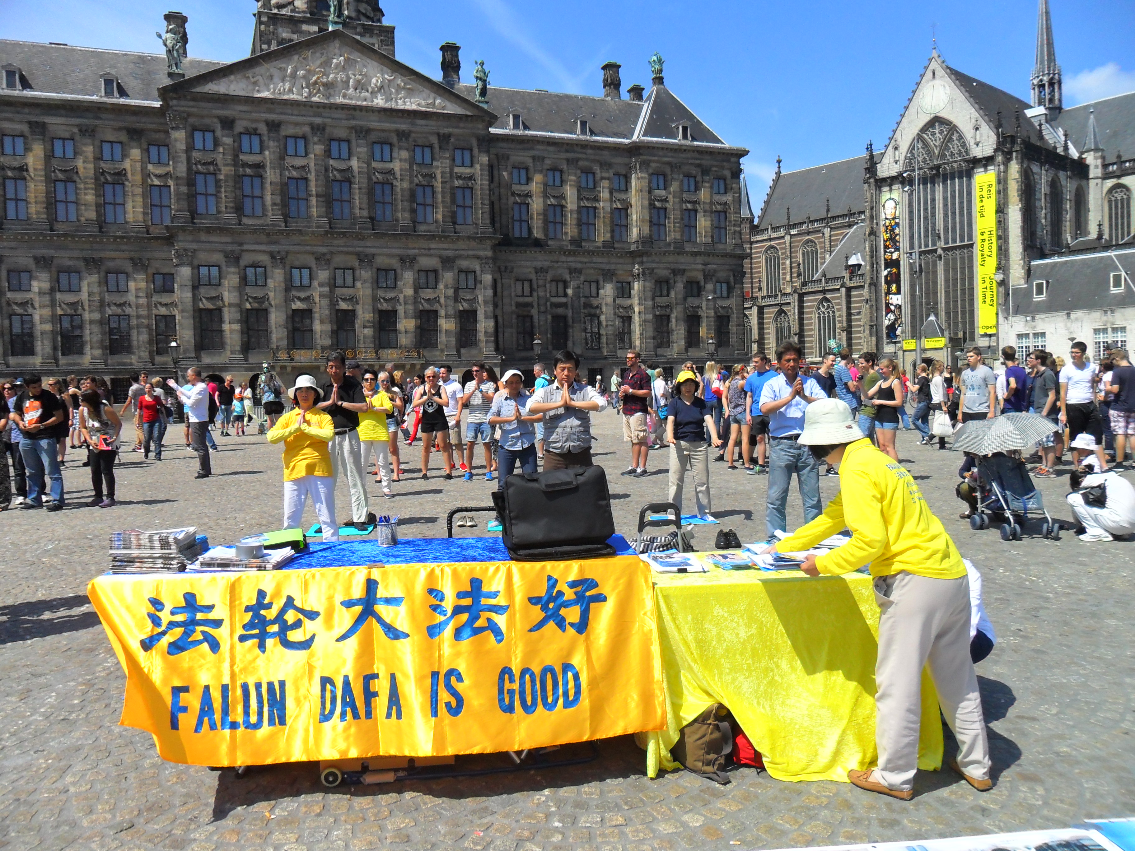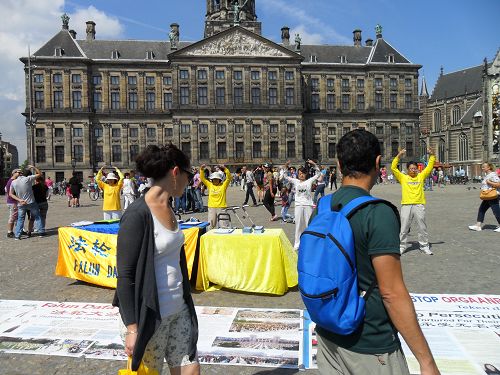 ![]() 图1:荷兰法轮功学员在达姆广场上演示功法 |