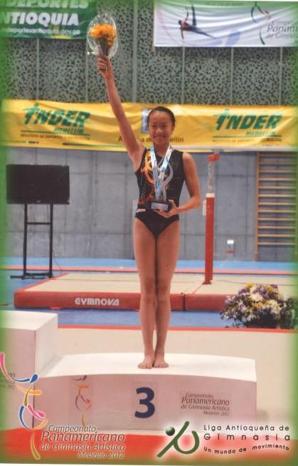 ![]() 图1-2:二零一二年六月少年泛美国际赛(Junior Pan Am at Columbia),Aleeza第一次参加国际比赛,获得团体第一名,个人全能第三名。这是她第一次参加国际比赛 |