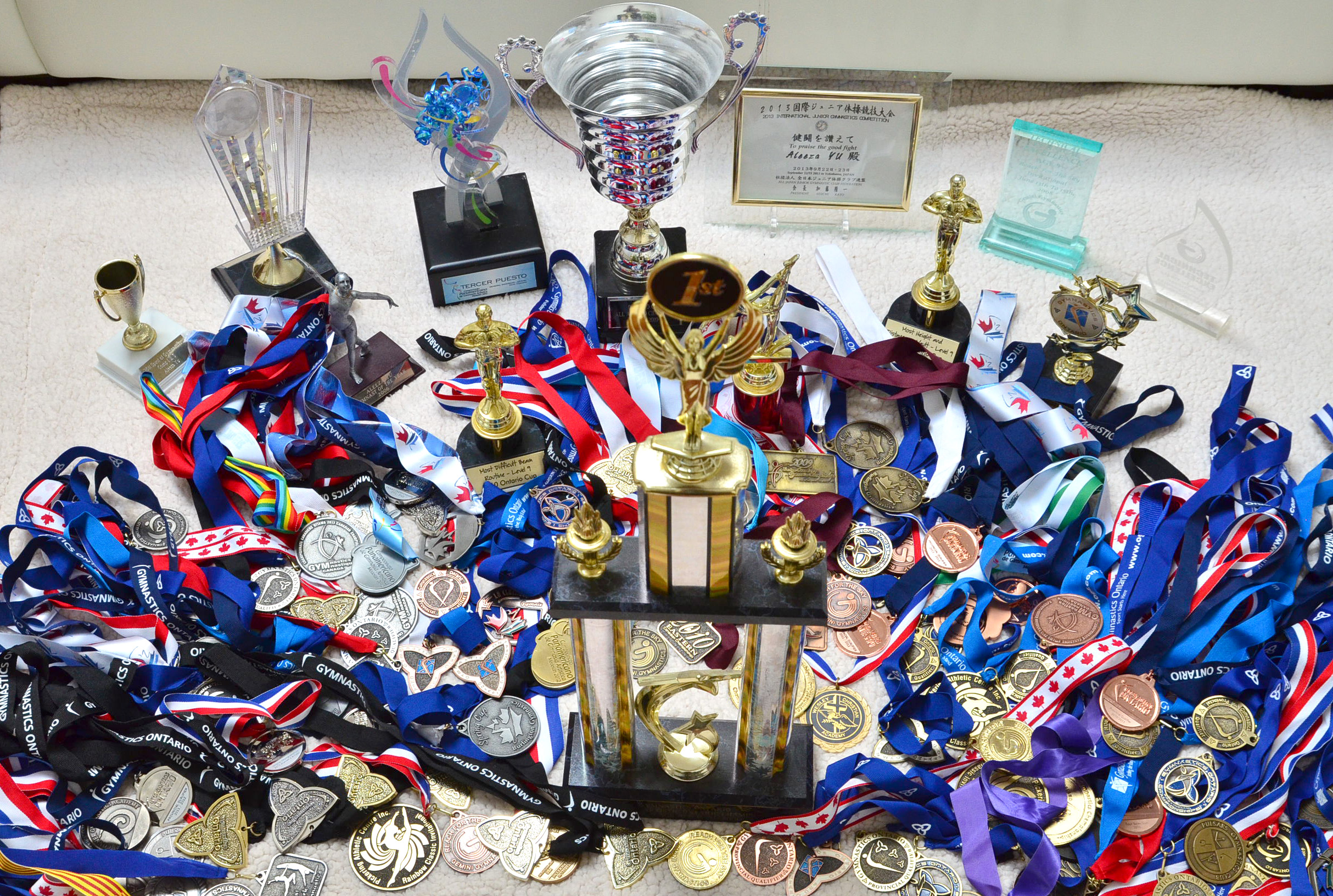 ![]() 图4:Aleeza参加体操比赛获得的部分奖杯和奖牌 |