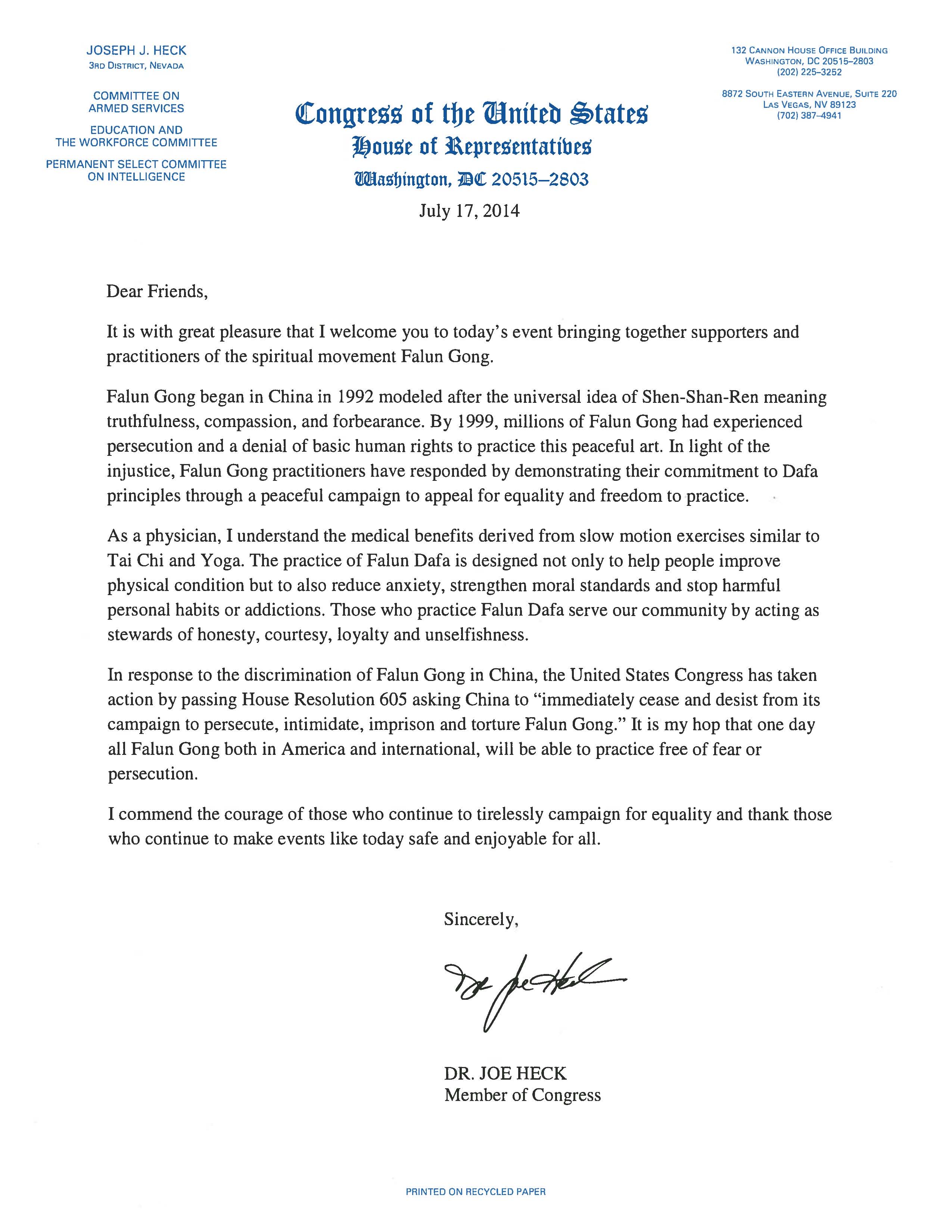 ![]() 内华达州国会众议员乔•海克(Joseph Heck) | ![]() 内华达州国会众议员乔•海克(Joseph Heck)的信函 |