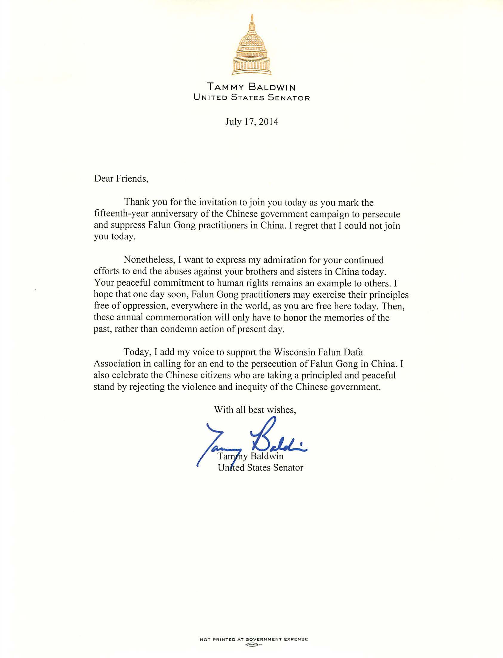 ![]() 威斯康星州的美国国会参议员塔米• 鲍德温(Tammy Baldwin) | ![]() 威斯康星州的美国国会参议员塔米• 鲍德温(Tammy Baldwin)女士的信函 |
