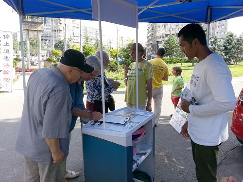 二零一四年七月十三日,罗马尼亚法轮功学员在首都布加勒斯特市Plumbuita公园,举行了抗议中共迫害法轮功的反人类罪行的活动。