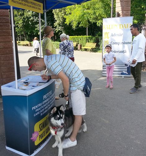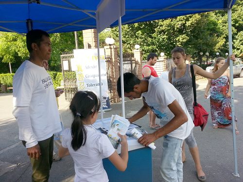 Marian先生和Florentina Crăciun夫人带着他们六、七岁的女儿来到公园散步时,读到了迫害真相传单后,立刻在请愿书上签了名。Marian先生表示,如果可以的话,他们还可以再多签几遍名,虽然迫害因此而停止的机会比较小,但是他觉得这个签名有着很重大的意义。