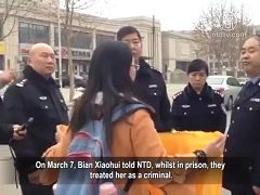 二零一二年二月二十五日,唐山开滦十中优秀教师卞丽潮,只因当局怀疑他制作神韵光盘而遭绑架,骗走十余万元现金,同年七月被诬判十二年重刑。卞丽潮老师的遭遇得到当地民众同情,有279人联名呼吁并按手印,要求释放卞老师。二零一四年三月,听闻饱受折磨、身心每况愈下的父亲生死难料,监狱却不让接见,二十三岁的女儿卞晓晖毅然在监狱门口打出横幅“我要见父亲”,孝心堪称当代“缇萦”。