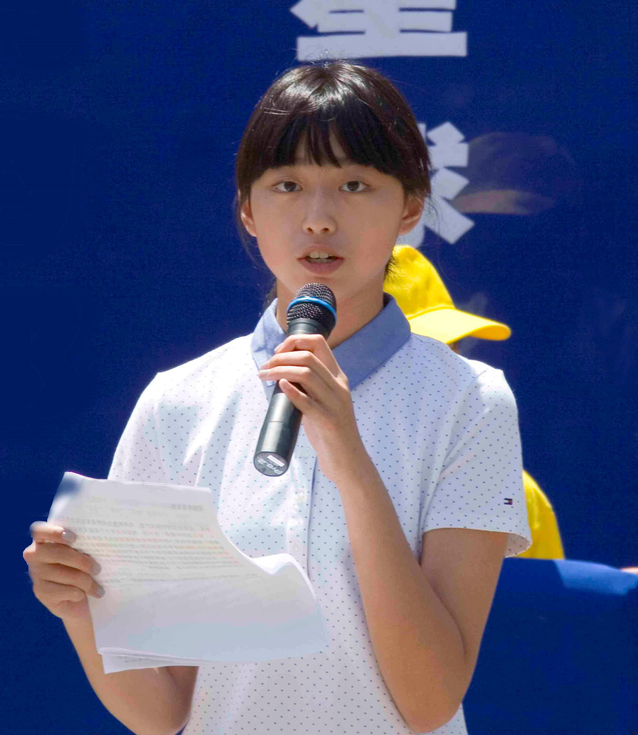 从中国大陆来美不到一年的于子真在集会上,以自己的经历揭露了中共对中国大陆法轮功学员的残酷迫害。她表示,中共的迫害令无数原本幸福和睦的家庭支离破碎。