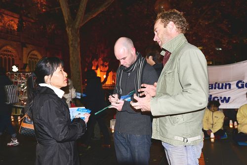 ![]() 图1:悉尼大法弟子举办烛光夜悼活动 |