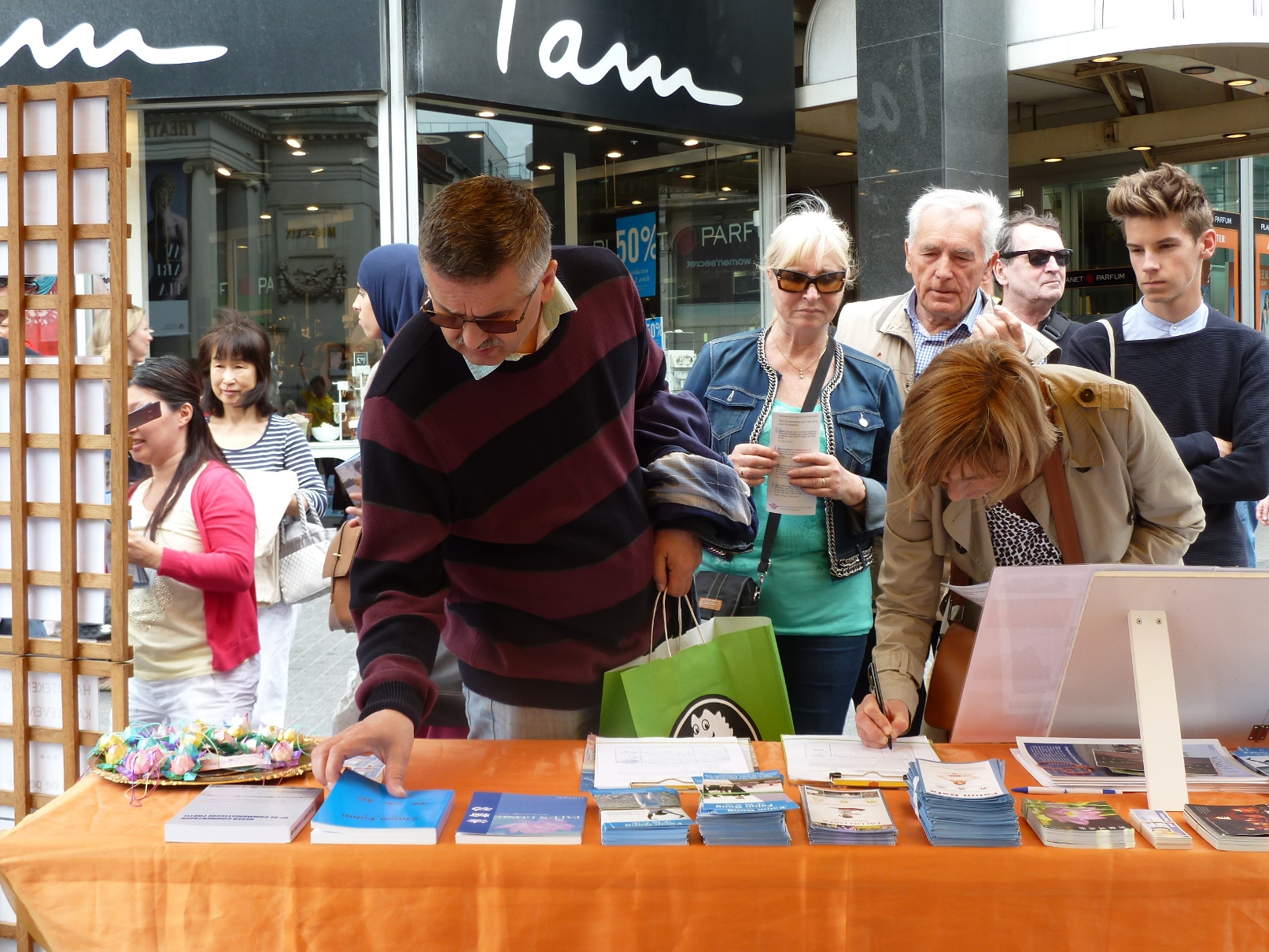 “这是真的吗?太令人吃惊了!”一面看着祥和打坐的法轮功学员,一面听闻这样美好的功法在中国遭受如此残酷的迫害,许多比利时人发出惊叹。许多过路民众在和法轮功学员交谈中了解到活摘器官的罪行之后,郑重签下自己的名字。来自英国的教师Joseph Mctaggart就是其中一位。他说:“法轮功是那么平和。我非常难过看到这些迫害的事情,特别是签名簿上说的那些(活摘器官的罪行)。这种对人性的迫害,真令人伤心。我很在意生活在地球另一端的兄弟姐妹,我想为他们做点什么。”