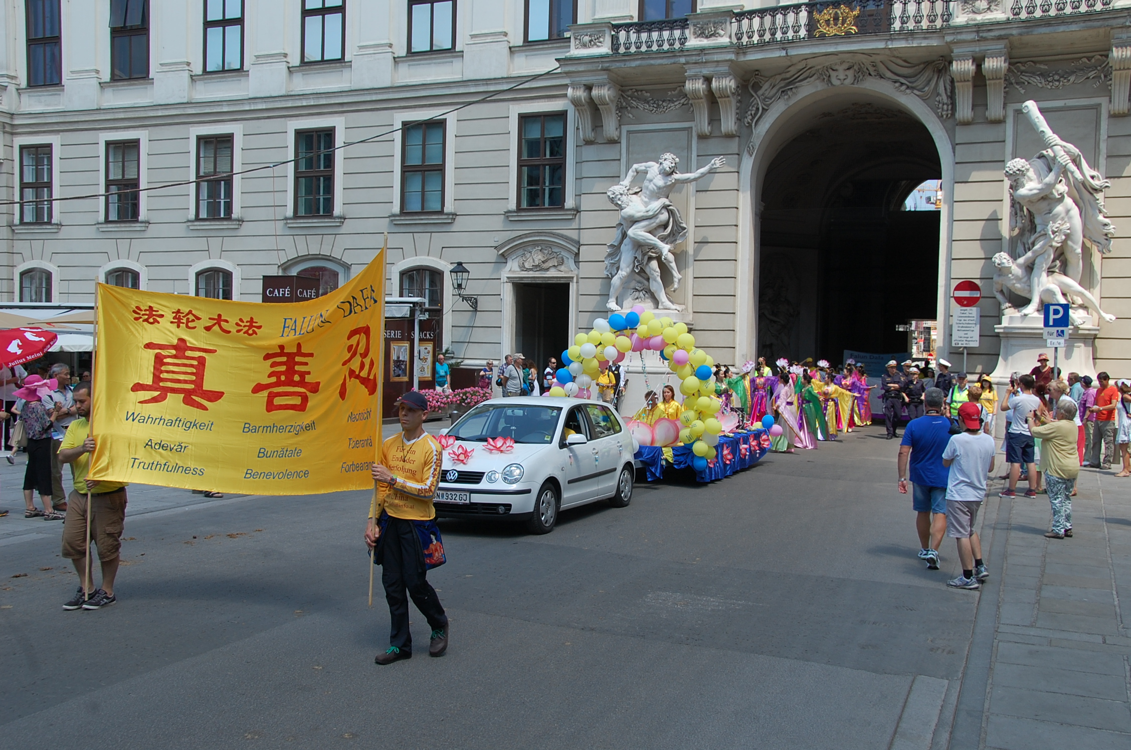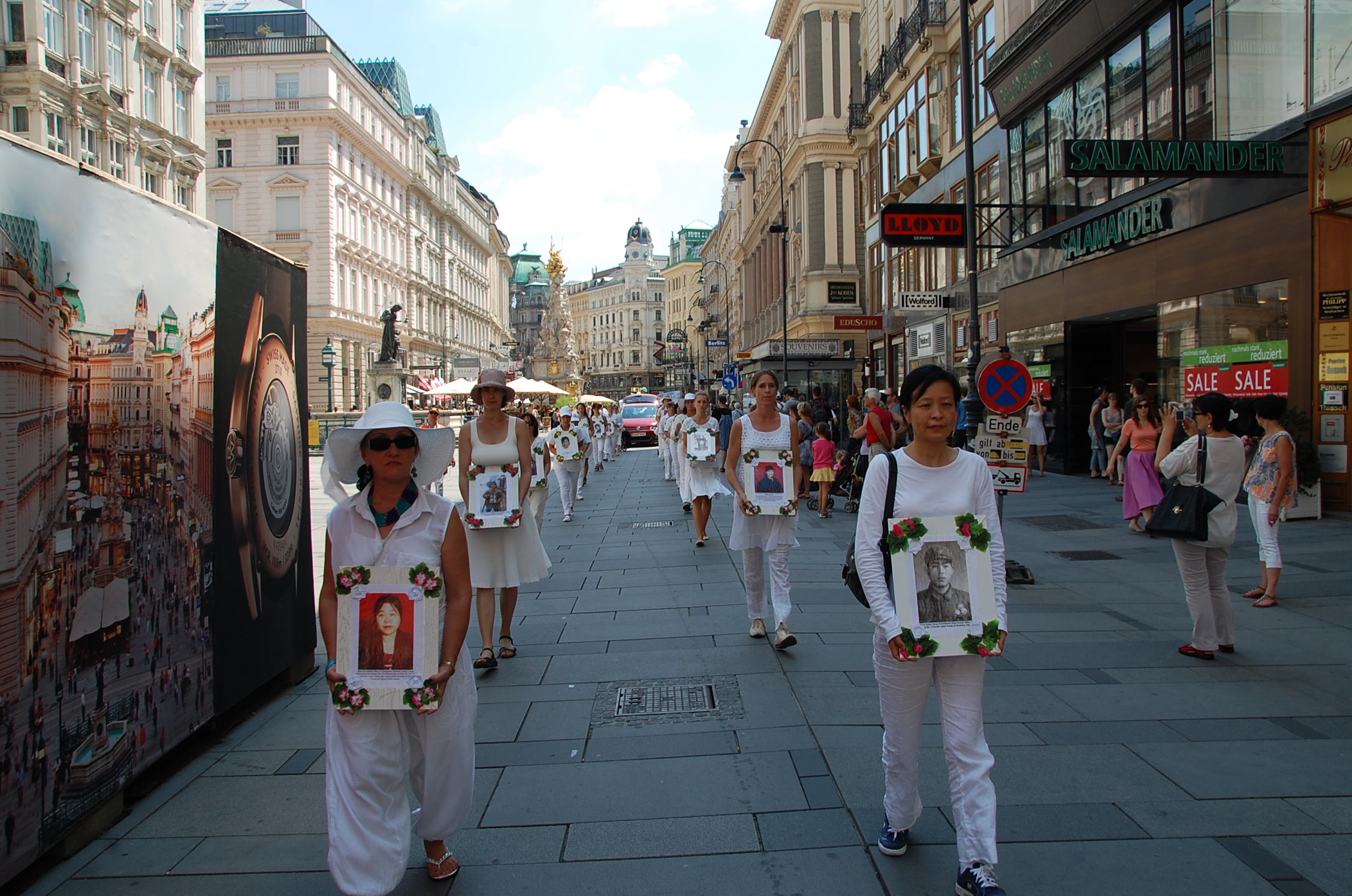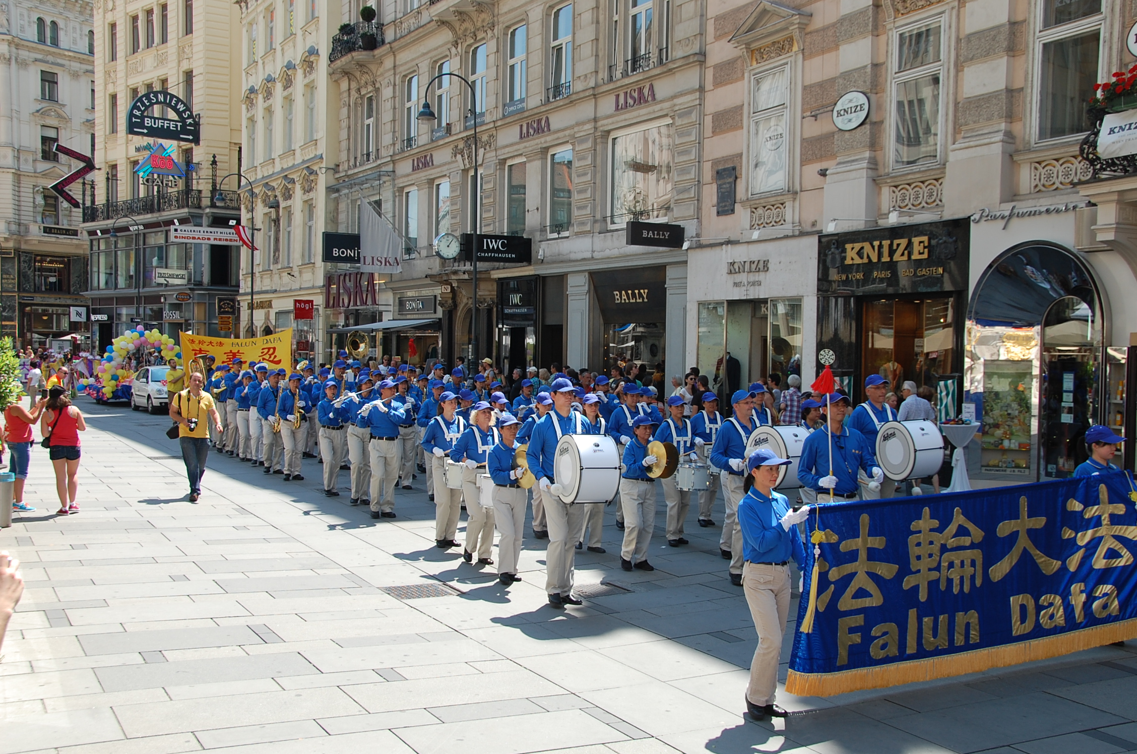 法轮功学员的游行队伍经过了维也纳市中心最著名的格拉本大街(Graben