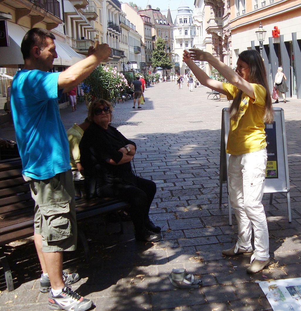![]() 法轮功学员在在德国南部名城Baden-Baden(巴登巴登市)举办信息日活动,揭露中共活摘器官 |