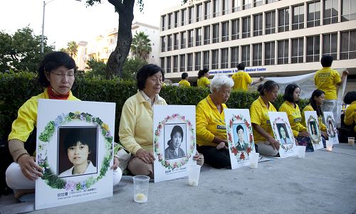 ![]() 图1-7:法轮功学员在洛杉矶中领馆前抗议中共长达十五年的迫害 |
