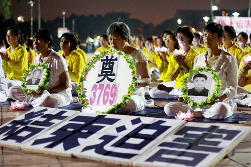 ![]() 马来西亚法轮功学员在吉隆坡蒂蒂旺莎公园举行烛光追悼会,悼念多名被迫害致死的法轮功学员。 |