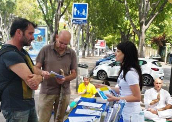 七月二十日,法国南部的部份法轮功学员在马赛的中领馆前举行集会,向过往行人讲真相、发放真相资料,征集签名制止中共活体摘取法轮功学员器官,揭露中共对法轮功的残酷迫害,呼吁制止迫害。