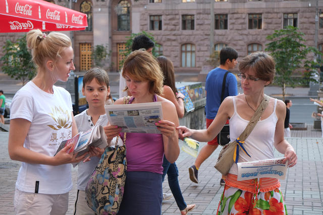 【明慧网二零一四年七月二十四日】二零一四年七月二十日,是全球法轮功学员和平反迫害十五周年纪念日。这一天,乌克兰法轮功学员分别在首都基辅市、旧首都哈尔科夫市、工业重镇第涅伯市等主要城市举办征签活动,揭露中共的罪恶,呼吁各界共同制止中共迫害。许多市民签名支持。