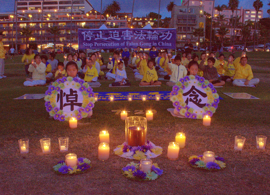 图3:傍晚,圣地亚哥法轮功学员继续举办烛光悼念,呼吁制止迫害。