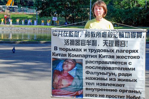 ![]() 图5-6:二零一四年七月二十日,莫斯科学员在中使馆前抗议中共的迫害,并呼吁制止迫害。 |