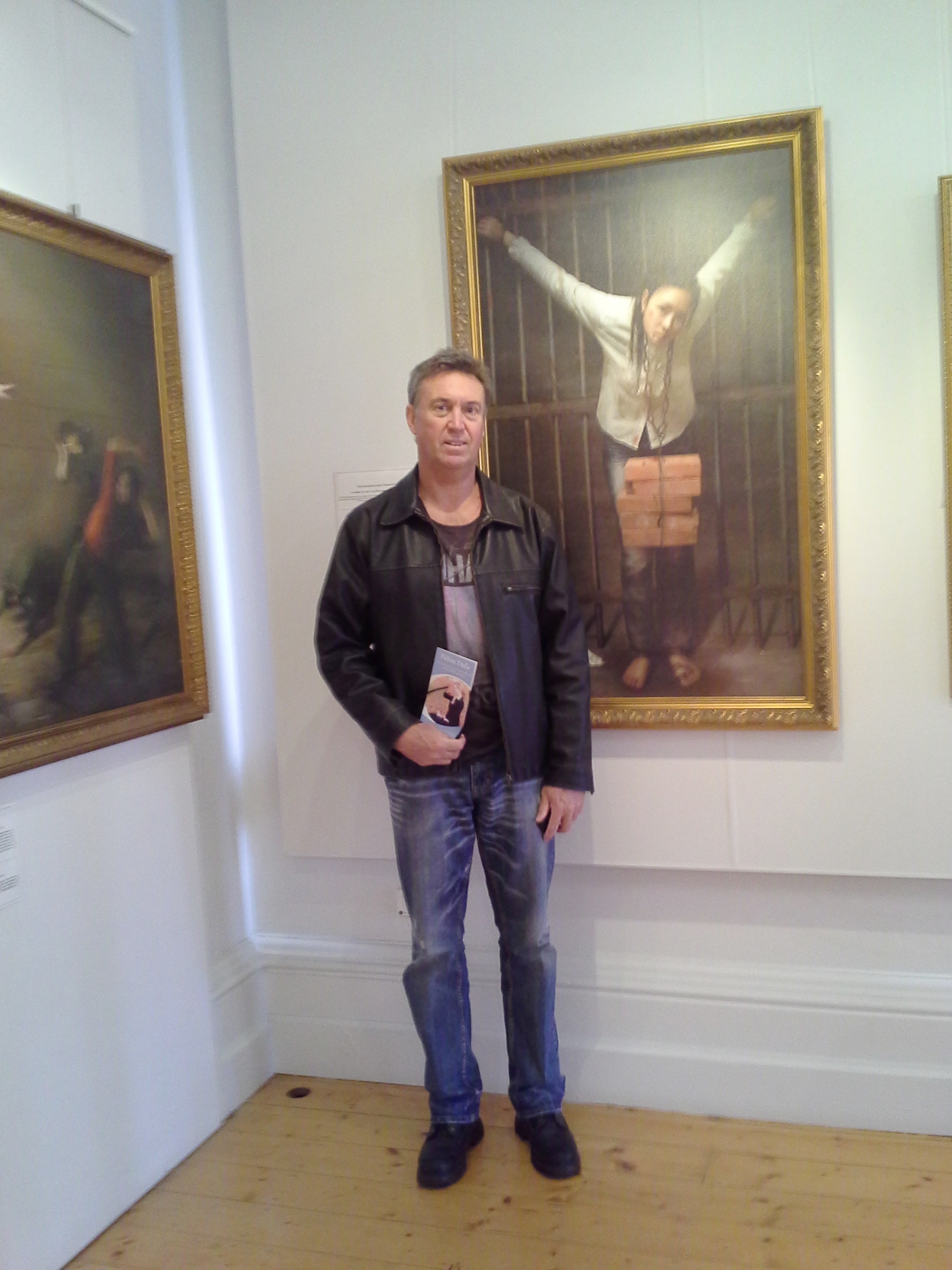 特雷沃(Trevor)也是一位画家,将在近期举办自己的画展,偶然走进“真善忍美展”的画廊立刻被吸引。他说画面效果很逼真,如此大幅画作包含了巨大的工作量和心血,水准非常高,很多画作的光线明暗处理很好,突出了善恶的对比。他也感叹要做出这样的画需要静心和用心,现代派的画法表现不了这样的效果和内涵,很受启发。