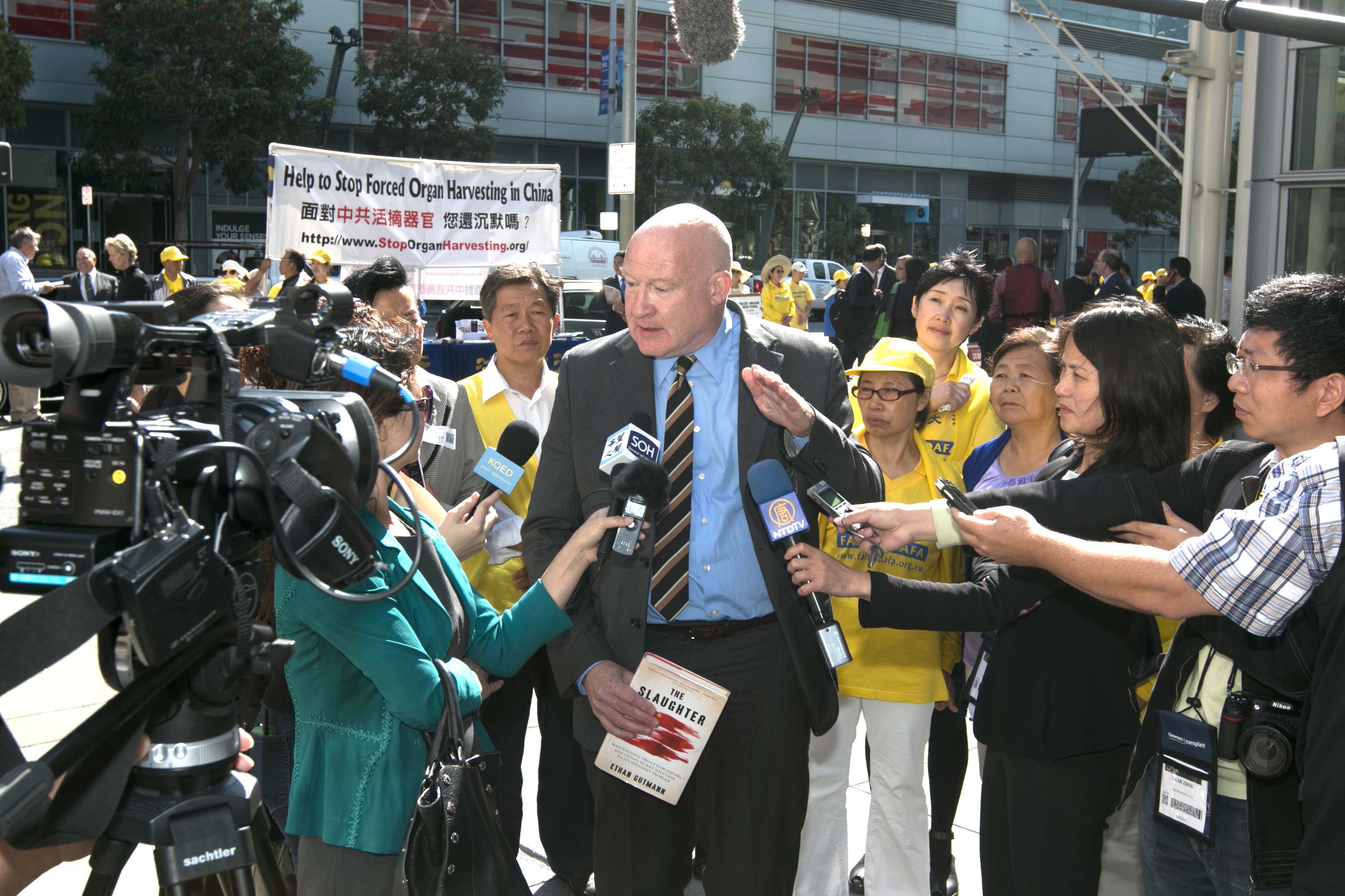 七月二十九日,世界器官移植大会在旧金山举行期间,加拿大人权律师麦塔斯、美国作家葛特曼,以及来自旧金山湾区的法轮功学员在会场外召开新闻发布会,敦促器官移植界采取有效措施,制止在中国发生的强摘器官暴行。