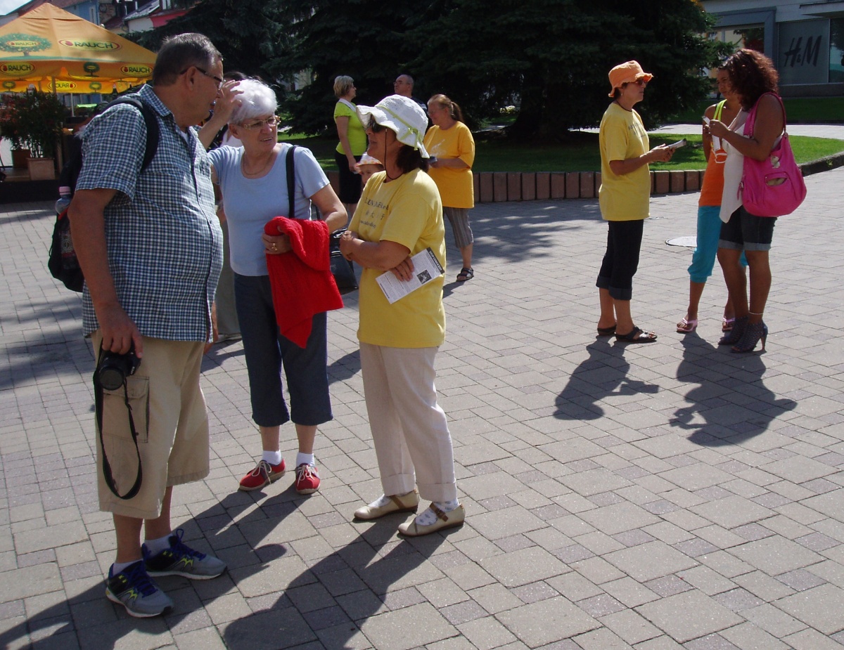 ![]() 东部小城市波普拉德里,人们和法轮功学员们交谈了解真相 |
