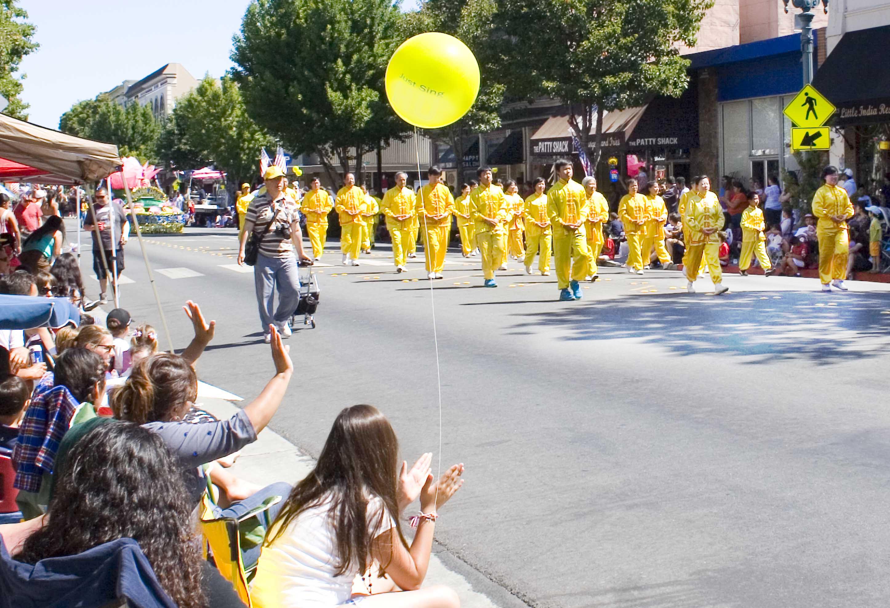 西裔观众弗洛拉看到法轮功学员的队伍过来,她不停地挥手,她说,我喜欢他们的队伍。许多观众对法轮功学员的队伍,跟弗洛拉一样,都有同样的感受。还有华人观众用中文为法轮功叫好:法轮功加油!