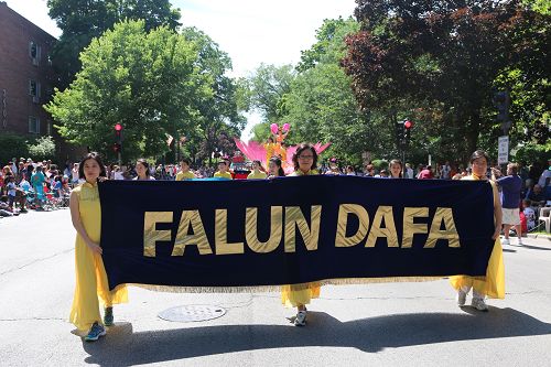 美国独立日当天,做为唯一的一支华人队伍,芝加哥法轮功学员连续第十四年参加了北郊埃文斯顿市举行的独立日遊行。