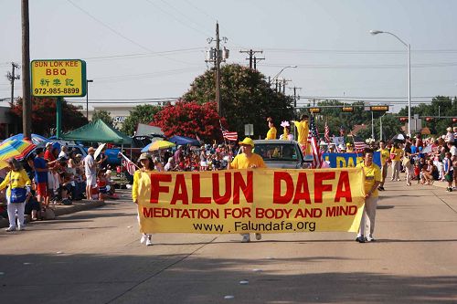 七月四日是美国独立日,各地举办游行和烟火庆祝。德州达拉斯地区的法轮功学员再次参加布兰诺市的独立日大游行,他们祥和的仪容、美丽的花车及色彩亮丽的横幅为游行增添了节日的喜庆,居民赞漂亮、祥和。