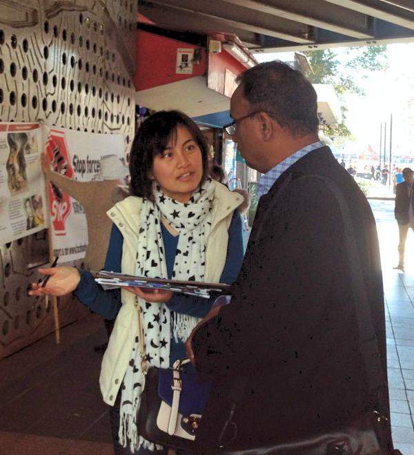 【明慧网二零一四年八月十一日】(明慧记者华清、穆文清报道)二零一四年八月九日,法轮功学员在澳洲悉尼最繁华的商务中心之一帕拉马塔市(Parramatta)用图片展示中共对法轮功学员的迫害事实,并征集“制止中共活体摘取法轮功学员器官罪行”的签名。