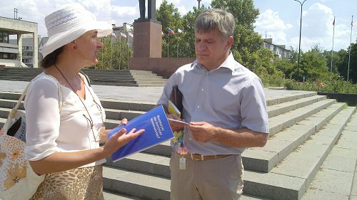 乌克兰部份法轮功学员利用周末时间,前往乌克兰中西部的主要旅游疗养城市,向当地世人弘传大法,并揭露中共迫害法轮功,活摘法轮功学员身体器官的暴行。