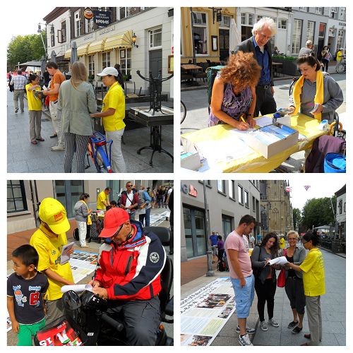 二零一四年八月九日,这座著名的历史古城的当地居民和旅游者,纷纷在荷兰法轮功学员讲真相、征签的展位前驻足,签名支持信仰法轮功权利的自由,谴责中共迫害善良的信仰者。