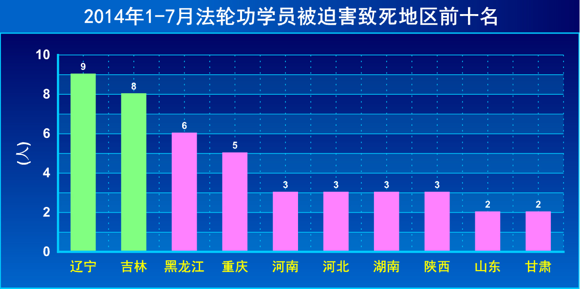 2、今年头七个月辽宁、吉林法轮功学员被迫害致死人数居全国一、二位