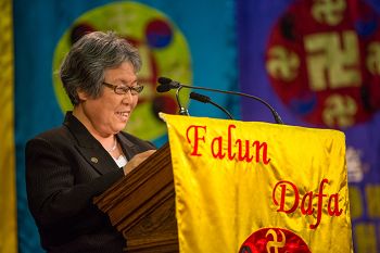 修炼了十八年的张玉环女士讲述了当自己意识到景点讲真相的重要性后,修去了求安逸心,到多伦多的景点给中国游客讲真相,劝三退的过程。她交流到:“多伦多的景点是众生聚焦的景点。在电视塔,同修们摆下了解体邪恶的正念之场。每天电视塔的正门挂着一排‘法轮大法好、解体中共’的横幅,金光耀眼,四面八方的游客都会一眼看到,震撼壮观,字字句句都向众生展示着慈悲与救度。记得我给一男游客劝退后,告诉他记住常念‘法轮大法好,真善忍好’,他马上说:“来到这第一眼就看到了,上面都写着呢!”