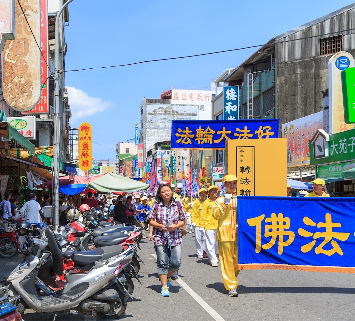 ![]() 由五百多人组成的法轮大法弘法队伍走过台南市主要的闹区和乡镇,把大法美好带给民众。 |