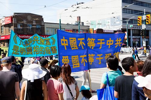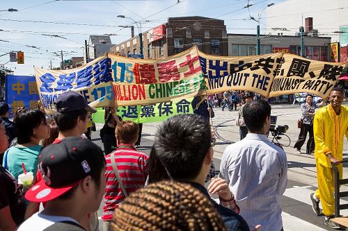 董女士给他介绍说:“法轮功在海外弘传100多个国家了,这只是多伦多的其中一次游行。”张先生说:“真太震撼了,没想到在国外这么自由。”当听完董女士给他讲法轮功的迫害真相后,他马上同意退了团。