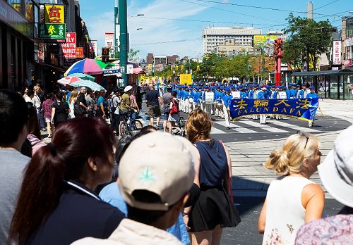 “哇,法轮功游行队伍的阵容这么壮大、壮观!真了不得。”“没想到在海外这么自由!”从中国大陆来加拿大多伦多十个月的王女士反复感叹着。
