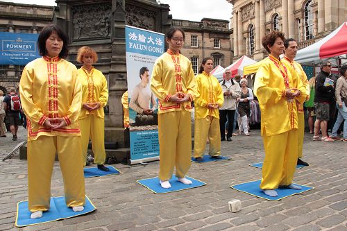 一年一度为时三周的爱丁堡艺穗节于二零一四年八月一号在苏格兰首府爱丁堡拉开帷幕。来自苏格兰、英格兰的一些法轮功学员连续两个周末在艺穗节上展示法轮功功法,派发介绍法轮大法的传单。