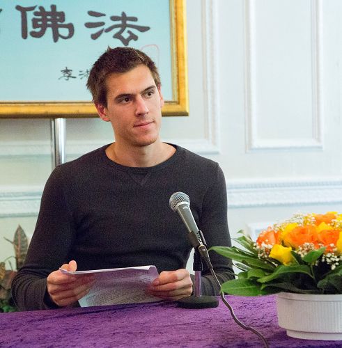 现居利兹市的希腊小伙子斯特凡•马特拉科卡斯(Stefanos Matrakoukas)今年二十八岁,大约一年前开始了修炼。他在法会上回顾了自己一年来的修炼经历,交流自己在遇到病业干扰和经济困境等魔难考验时,通过加强学法、努力坚持做三件事走了过来。 “我学法和炼功越多,我理解的也越多。在任何事上都把自己当作是一个法轮大法的修炼者,问自己我所要做的是否符合宇宙的更高原则,向内找找到自己的不足。无论发生什么,我会继续保持积极正面的态度和信心,我会修炼成功并且要救度众生。”