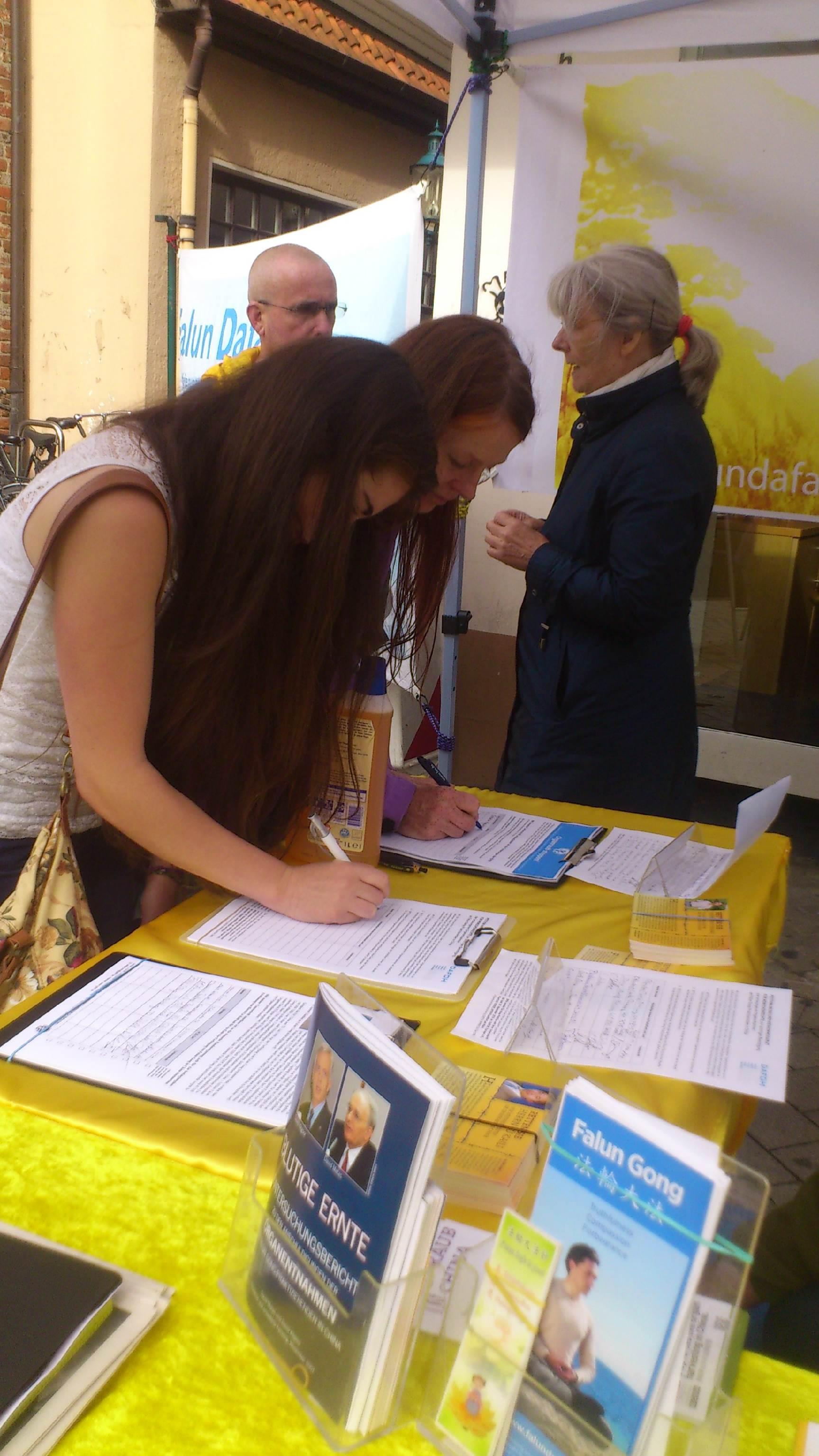 图:德国奥尔登堡市民签名抗议中共活摘法轮功学员器官