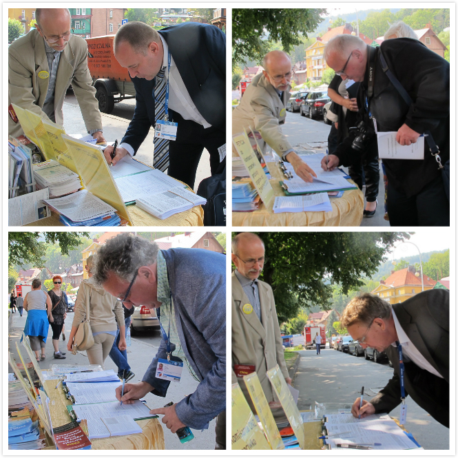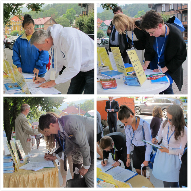 媒体记者Artur Barbarowski先生,《共和国报纸》媒体记者Jan Kowalski先生,波兰《Super Express》记者都留下签名表示支持法轮功。九月四日,在经济论坛会议结束的当天,当地网站sadeczanin.info即对法轮功学员在此征签作出详细报道,该报道当天点击量即达到两千多次。