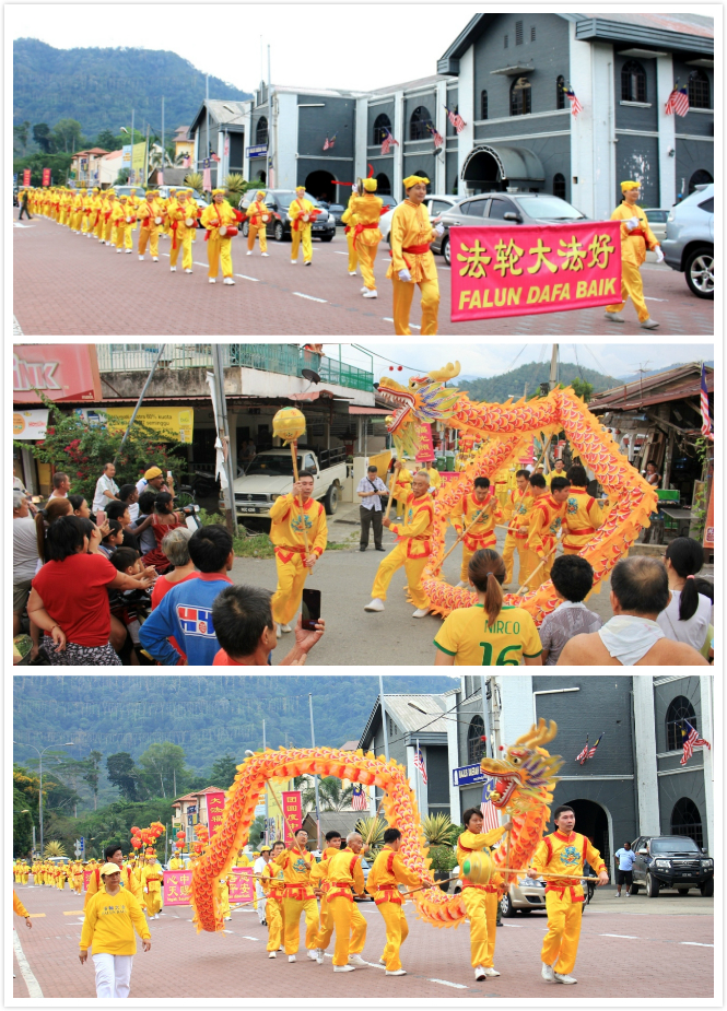 九月七日上午十时,法轮功学员于相隔三十多公里外,约半小时路程的文冬(Bentong),另一个超过百年历史的古老市镇举行第二场的中秋游行。据悉,文冬是广西人在马来西亚的第一个据点,可说是个广西村,广西人占了当地华人的百分之八十。当天,法轮功学员举办的庆中秋游行,让当地民众雀跃万分,纷纷走出来或追随观看。