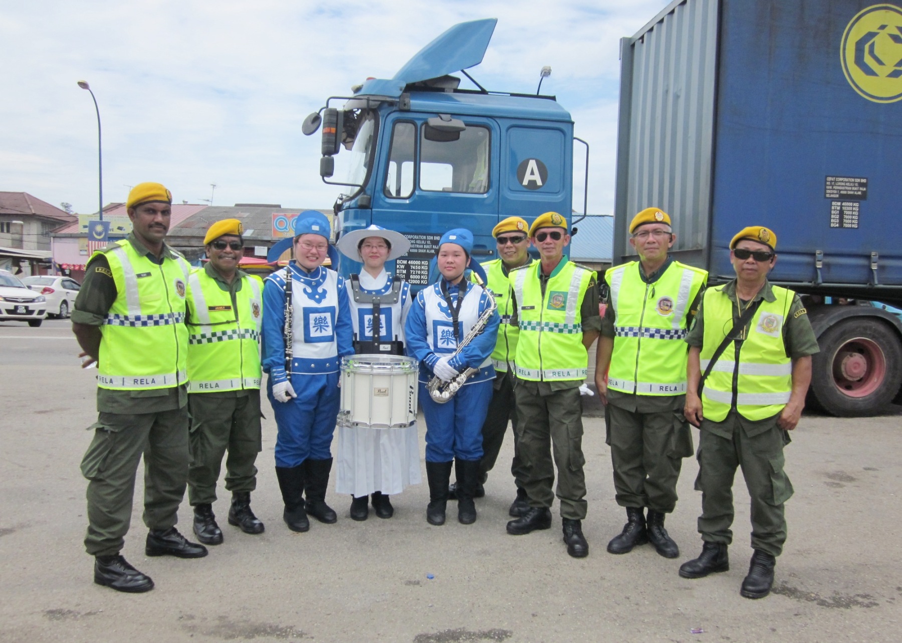 ![]() 加叻游行结束后,志愿警卫队与天国乐团成员拍照留念。 |